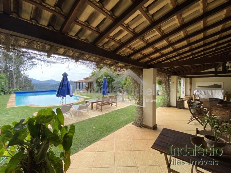 Casa a venda em Itaipava, Petrópolis/RJ, com vista espetacular para as montanhas da região. O imóvel, em estilo colonial, fica em condomínio fechado com segurança e extensa área verde. Sao 4 suítes (1 master), sala em 3 ambientes, cozinha, escritório, área de serviço, banheiro social e varanda. Gramado com piscina, área gourmet, sauna, pequeno lago, quadra poliesportiva e muito estilo. Casa de caseiro